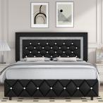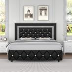【並行輸入品】HOMBCK フルサイズ ベッドフレーム ダイヤモンドヘッドボード付き フェイクレザー布張りプラットフォームベッド マットレスファ