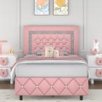 【並行輸入品】ツインベッドフレーム フェイクレザープラットフォームベッド ダイヤモンド布張りのヘッドボード付き マットレスファンデーション 強力