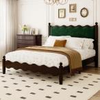 【並行輸入品】木製 ベッドフレーム クイーン ヴィンテージウェーブヘッドボード付き ベルベット布張り ベッドフレーム マットレスファンデーション