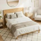 【並行輸入品】KOMFOTT フルサイズ木製プラットフォームベッドフレーム ラタンヘッドボード付き ボーホーラバーウッドベッドフレーム 合板スラ