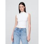 tシャツ モダン ファンネルネック ルーシュ クロップド タンクトップ レディース