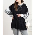 ベスト ジレ NARNAD 無地ベルト付きニットベスト レディース