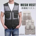 メッシュベスト メンズ 夏用 ベスト ポケット付 作業着 農業 仕事 日用大工 レディース ウォーキング 登山 釣り マン ミリタリー 撮影用