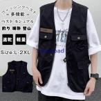 フィッシングベスト メンズ 作業着 ベスト カジュアル ワークベスト オーバーサイズ 速乾 軽量 多機能 カメラマン 釣り 撮影 登山 夏