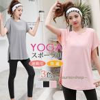Tシャツ ヨガウェア レディース トップス 半袖 ロング丈 スポーツ ジム ルームウェア 体型カバー ストレッチ 吸汗 速乾 ランニング 着痩せ