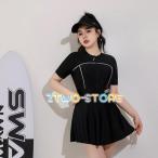 水着 「3点セット」半袖 ジップアップ 配色 フィットネス 水着 レディース
