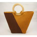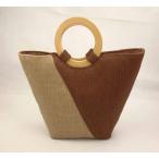 ハンドメイド アバカ繊維 持ち手ラウンド(木製) トートバッグ 茶色×ベージュ A02 ハンドバッグ