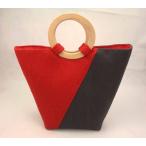 ハンドメイド アバカ繊維 持ち手ラウンド(木製) トートバッグ 赤色×ブラック A03 ハンドバッグ