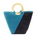 ハンドメイド アバカ繊維 持ち手ラウンド(木製) トートバッグ 空色×ブラック A01 ハンドバッグ