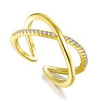 【並行輸入品】QYYGYLLR Xツイスト エタニティ オープンリング レディース 14Kゴールドメッキ クリスクロス 模造ダイヤモンド キュー