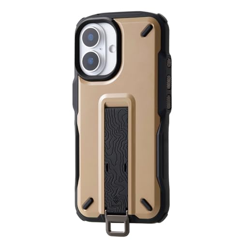 エレコム iPhone 16 ケース NESTOUT 耐衝撃 衝撃吸収 (リュックのショルダーベルトに装着可能) フィンガーバンド付き スタンド機能 ストラップホール付き アウトドア サンドベージュ PM-A24ANES