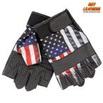 バイク フィンガーレス グローブ Sublimated Leather Heartbeat Flag 星条旗 レザー メッシュ 手袋 ベルクロ マジックテープ Hotleathers ホットレザー バイカー