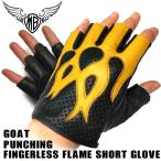 送料無料 MB 山羊革 パンチングメッシュ フィンガーレス ショートグローブ フレイム FLAME 穴あき キャメル モトブルーズオリジナル 夏用 HGG-15P-CAM