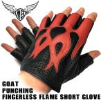 送料無料 MB 山羊革 パンチングメッシュ フィンガーレス ショートグローブ フレイム FLAME 穴あき レッド モトブルーズオリジナル 夏用 HGG-15P-RD