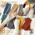 指なし手袋 フィンガーレス ニットグローブ デミグラブ レディース 手ぶくろ 防寒 秋冬 アラン模様 リブ編み ケーブル編み 無地 ショート丈 オープ