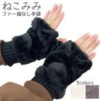 手袋 指なし レディース 大人 防寒 おしゃれ ネコ耳 ファー (134-755) 暖かい かわいい てぶくろ 高校生 中学生 女の子 ジュニア 指無し ふわふわ あったか