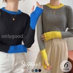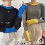 配色フィンガリブニット セーター レディース 着痩せ効果 リブ バイカラー ハイネック トップス フィンガーホール 指穴 萌え袖 長袖 プルオーバー 無地 シン