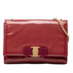 サルヴァトーレフェラガモ ヴァラリボン 斜め掛け チェーン ショルダーバッグ レッド エナメル レディース Salvatore Ferragamo 【中古】