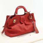 中古 フェラガモ トートバッグ レディース ブランド FERRAGAMO ガンチーニ 2WAYトートバッグ 21 D313 レッド バッグ