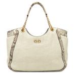 サルヴァトーレ・フェラガモ トートバッグ パイソン チェーンショルダー ファブリック ベージュ 肩掛け 【中古】