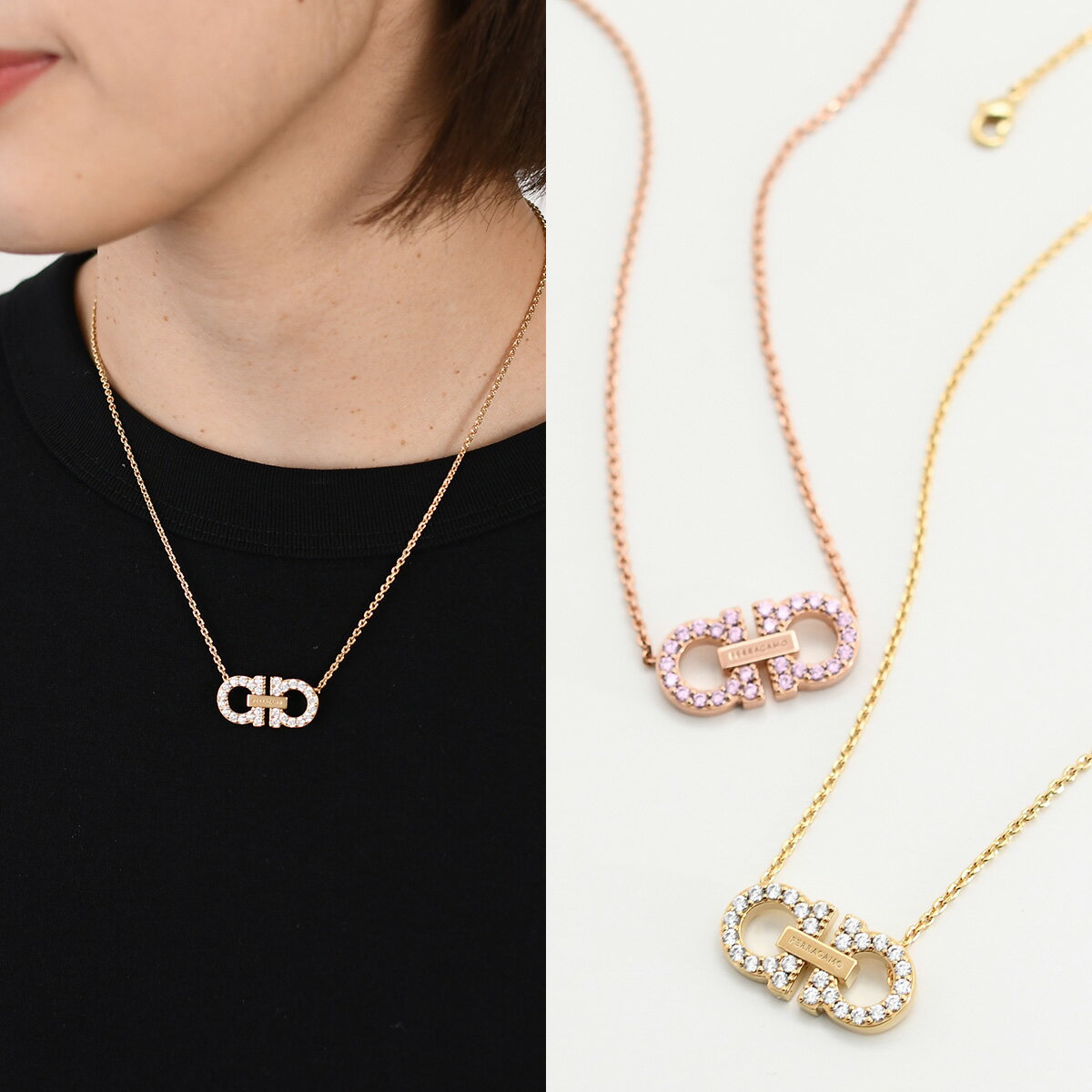 FERRAGAMO フェラガモ アクセサリー ペンダント ダブル・ガンチーニ Gancini クリスタル ネックレス 760875 レディース ゴールド ピンク 真鍮 プレゼント