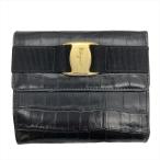 フェラガモ Ferragamo ヴァラ 二つ折り財布 レザー 224068 ブラック ゴールド金具 クロコ型押し レディース