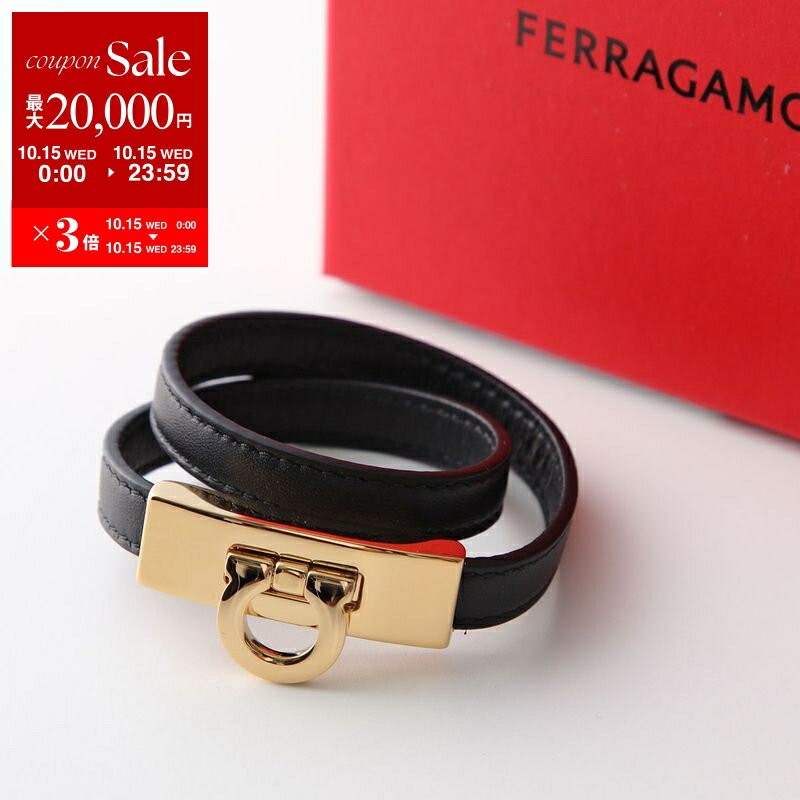 【10/15限定・最大2万円OFFクーポン配布中】FERRAGAMO フェラガモ ブレスレット 76 0768 776167 レディース ガンチーニ サイズ15 2連 レザー 001/BLACK/ORO-15