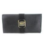 サルヴァトーレフェラガモ Salvatore Ferragamo 長財布 ロングウォレット 小銭入れあり レザー 革 リザード型押し VARA ヴァラ ロゴ 黒