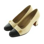 サルヴァトーレフェラガモ パンプス 切替トゥ チャンキーヒール ガンチーニ金具 4.5 22.0cm アイボリー 黒 55173 /MI ■OS レディース