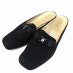 サルヴァトーレフェラガモ Salvatore Ferragamo ミュール ローファー ローヒール キャンバス 5 22.5cm 黒 ブラック ■GY53 レディース