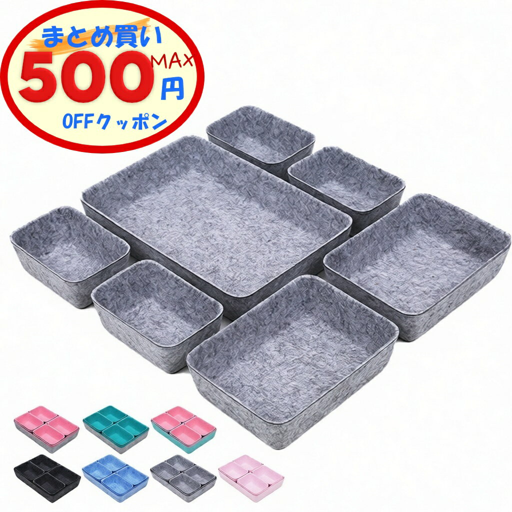 【最大500円OFFクーポンあり】 フェルト 収納ボックス 収納ケース 2色 キッチン用品 仕切りケース アクセサリー収納 7個組 フェルト 引き出し 仕切りトレー シンク下収納 小物入れ 収納雑貨 軽量 おしゃれ 可愛い 上質 便利 シングル 新生活 プレゼント ギフト 贈り物