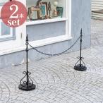駐車場 ポール おしゃれ フェンス チェーンスタンド アイアン 鉄 高級 CP-106 植物2タイプ 本体2本+チェーン1本 セット品 1セット単位 アジャスター付 屋外用
