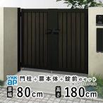 門扉 両開き おしゃれ アルミ門扉 YKK 門扉フェンス アルミ 木目調 ルシアス YS1型 複合色 門柱式 扉幅80cm×2 扉高さ180cm 0818 08-18