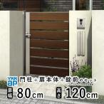 門扉 片開き おしゃれ アルミ門扉 YKK 門扉フェンス アルミ 木目調 ルシアス YS4型 複合色 門柱式 扉幅80cm 扉高さ120cm 0812 08-12