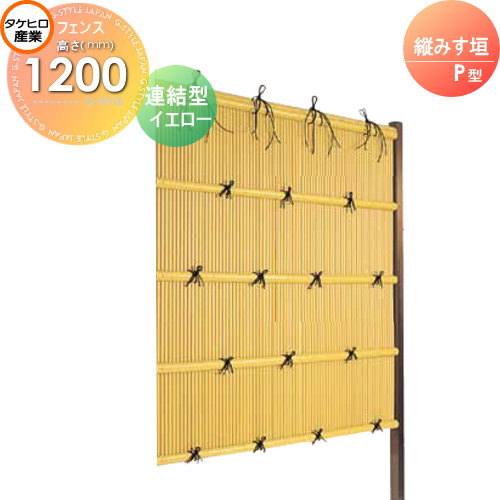 【無料★特典付】 人工竹垣フェンス 目隠し 組立式 タケヒロ産業 縦みす垣 P型(イエロー)連結型 H1200 SSPA-1012L 樹脂製 外壁 庭 和風空間 境界 屋外