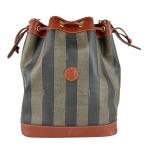 FENDI フェンディ ヴィンテージ FFロゴ 巾着 カバン 肩掛け バケツ型 ショルダーバッグ レザー ユニセックス ネイビー 【中古】