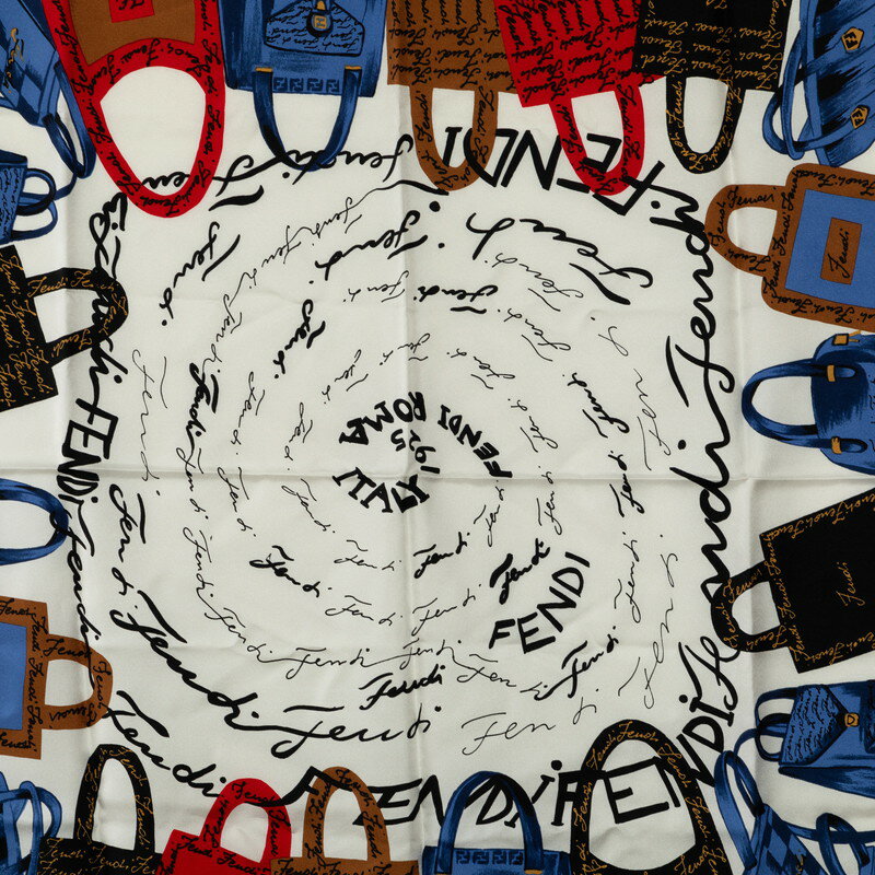 【絶対お得!!クーポンあり&10%OFF】中古 フェンディ スカーフ シルク Sランク 青 赤 バッグ柄 白 マルチ レディース FENDI あす楽【送料無料】【三田店】