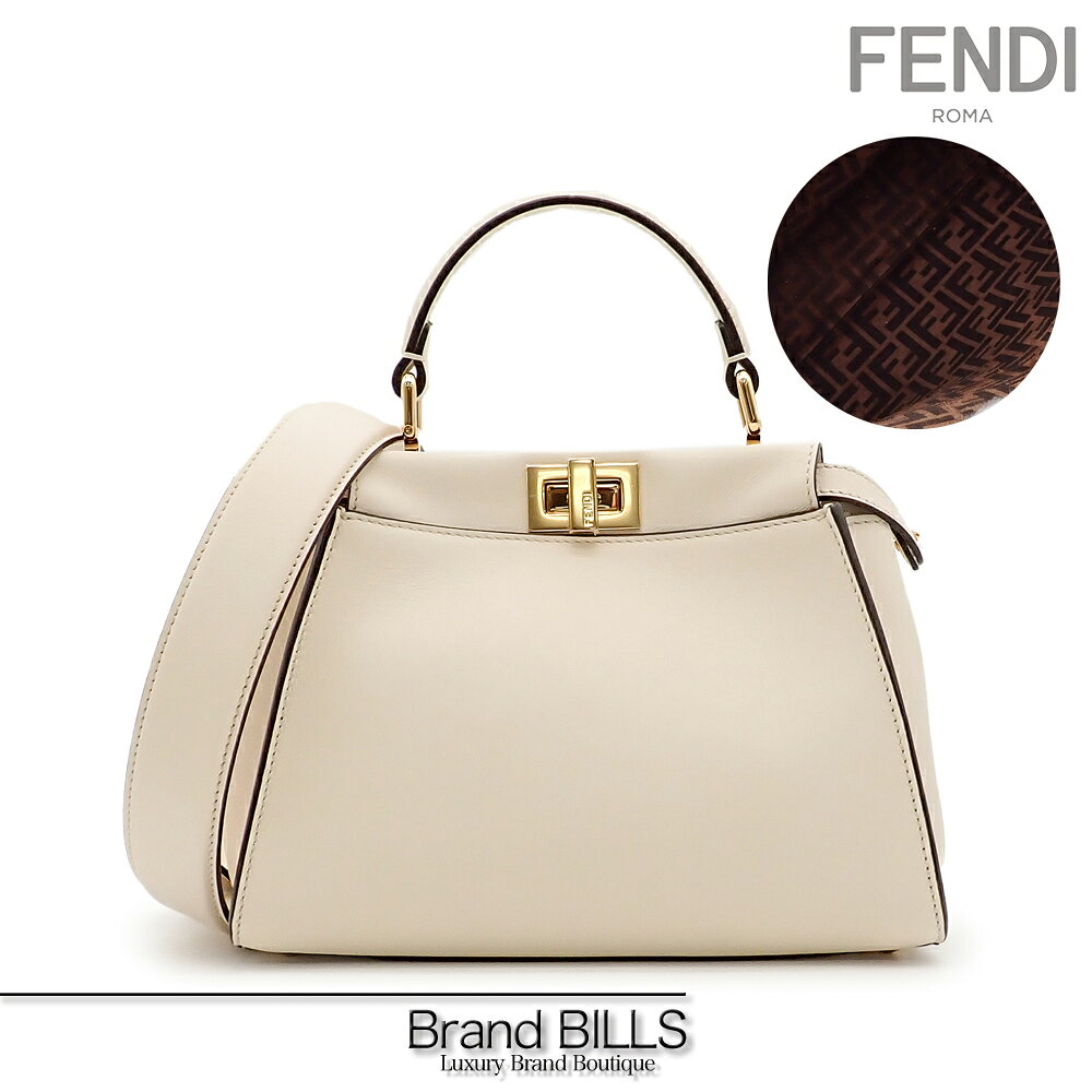 未使用品 FENDI フェンディ ピーカブー スモール ハンドバッグ ショルダーバッグ 2way ズッカ アイボリー系 ゴールド金具 8BN244 送料無料 【中古】