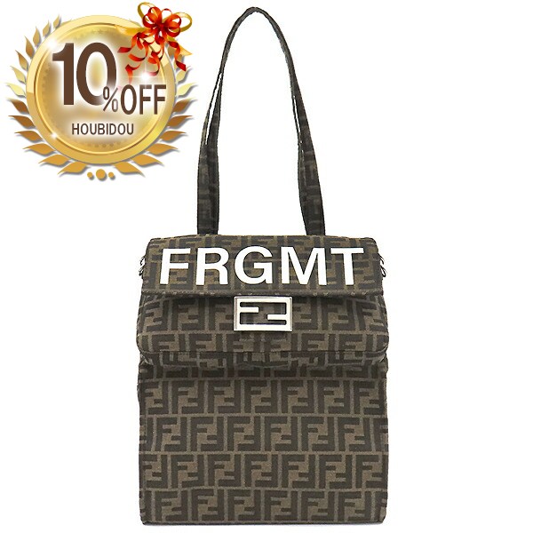 \10%OFFセール/ フェンディ FENDI ショルダーバッグ ズッカ バゲット フォールダブル キャンバス ブラウン シルバー金具 茶 フラグメントコラボ ハンドバッグ トート 8BH418 【保存袋】【中古】