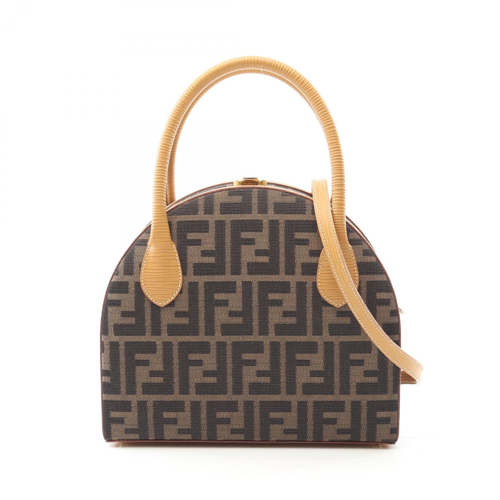 フェンディ FENDI ズッカ ハンドバッグ バッグ キャンバス レザー ブラウン系 【中古】