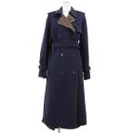 【美品】FENDI フェンディ ロングコート レディース 40 メルトン ダブルブレスト FF ズッカ モノグラム アウター ベルト付属 紺 茶色