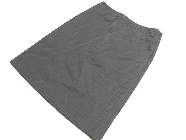 ※送料無料 D64 FENDI フェンディ レディース スカート ◆ 42 ブラック ズッカ柄 ナイロン ボトムス 台形 黒 ▼7H