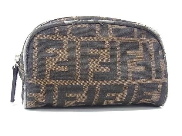 FENDI フェンディ ズッカ柄 キャンバス×レザー ポーチ マルチケース 小物入れ ブラウン系 DK6429