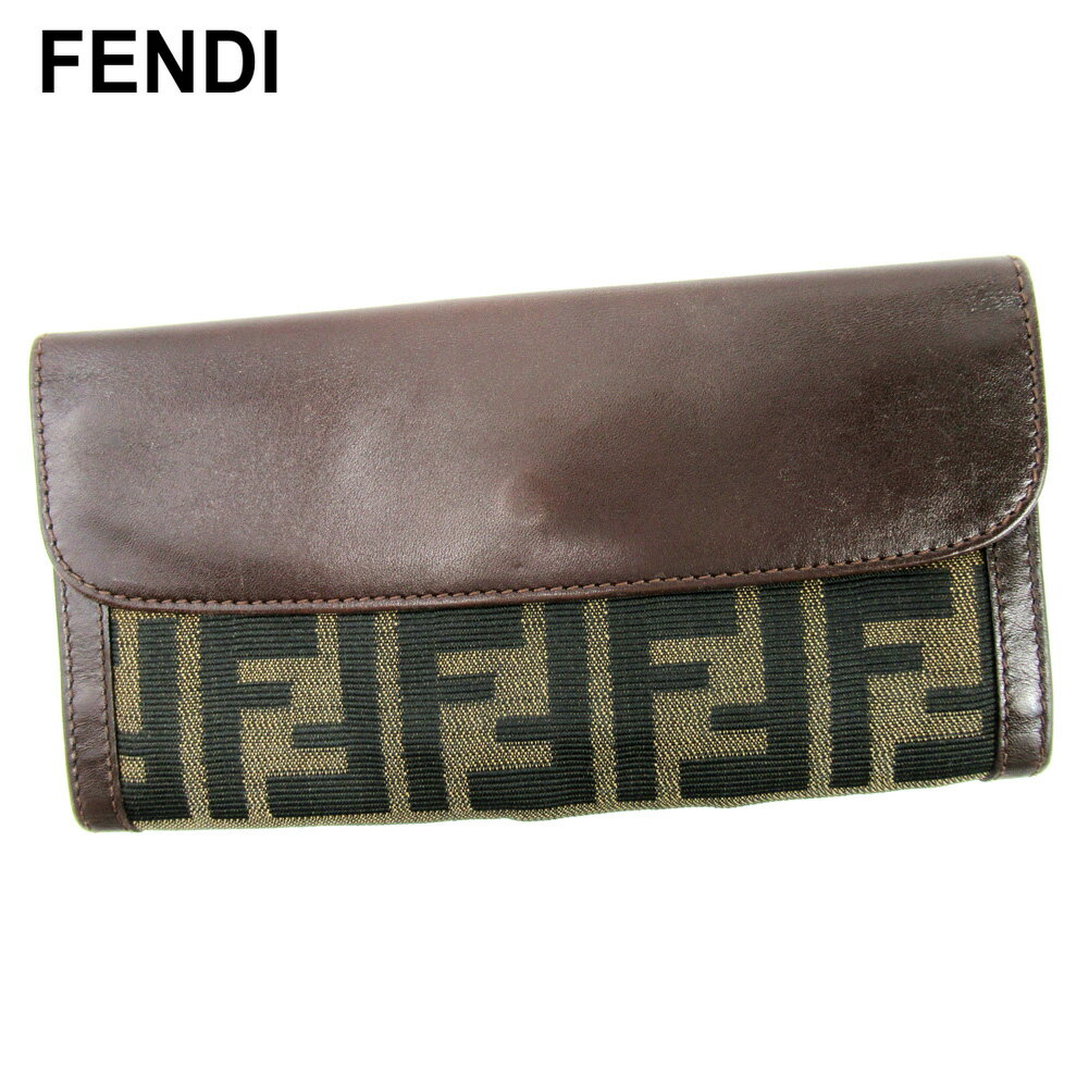 【Fashion Special Fair 30%OFFクーポン】フェンディ 長財布 ファスナー付き 長財布 ズッカ ベージュ ブラウン ブラック キャンバス×レザー FENDI 【フェンディ】 t10136s 【中古】 ブランド ハイブランド ヴィンテージ 送料無料