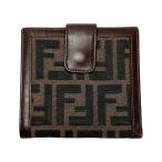 FENDI フェンディ ズッカ ロゴ ズッキーノ コンパクトウォレット 2つ折り財布 ブラウン ユニセックス【中古】