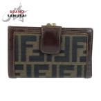 FENDI フェンディ ズッカ がま口 ブラウン ゴールド金具 キャンバス/レザー 折り財布 コンパクトウォレット レディース 600045