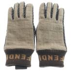 FENDI フェンディ 総ズッカ柄 キャンバス切り替えウール 手袋 ブラック/ブラウン FXY081 ABIN M