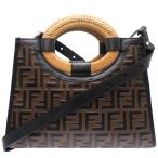 FENDI フェンディ ズッカ サンシャイン ラフィア ショルダーバッグ ブラック レディース 中古