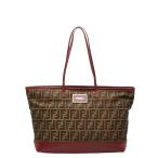 フェンディ ズッカ ハンドバッグ トートバッグ 8BH185 ブラウン レッド キャンバス レザー レディース FENDI 【中古】