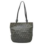 フェンディ ズッキーノ トートバッグ ハンドバッグ ショルダーバッグ ネイビー グレー キャンバス レザー レディース FENDI 【中古】